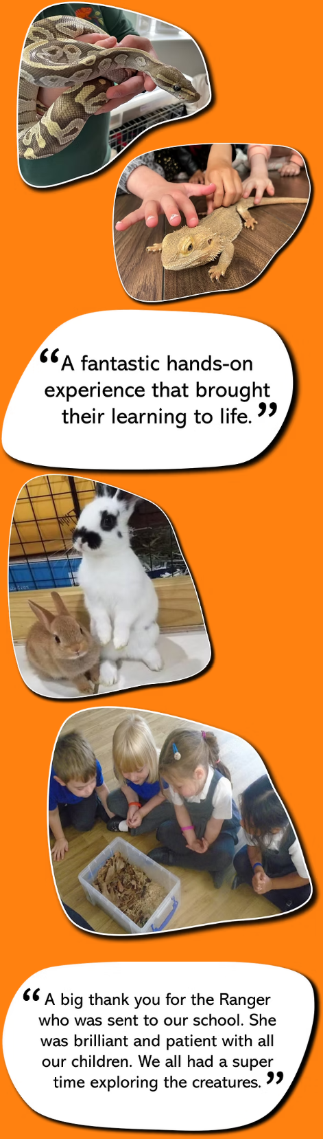 - Calm, interactive animal sessions tailored to early years settings